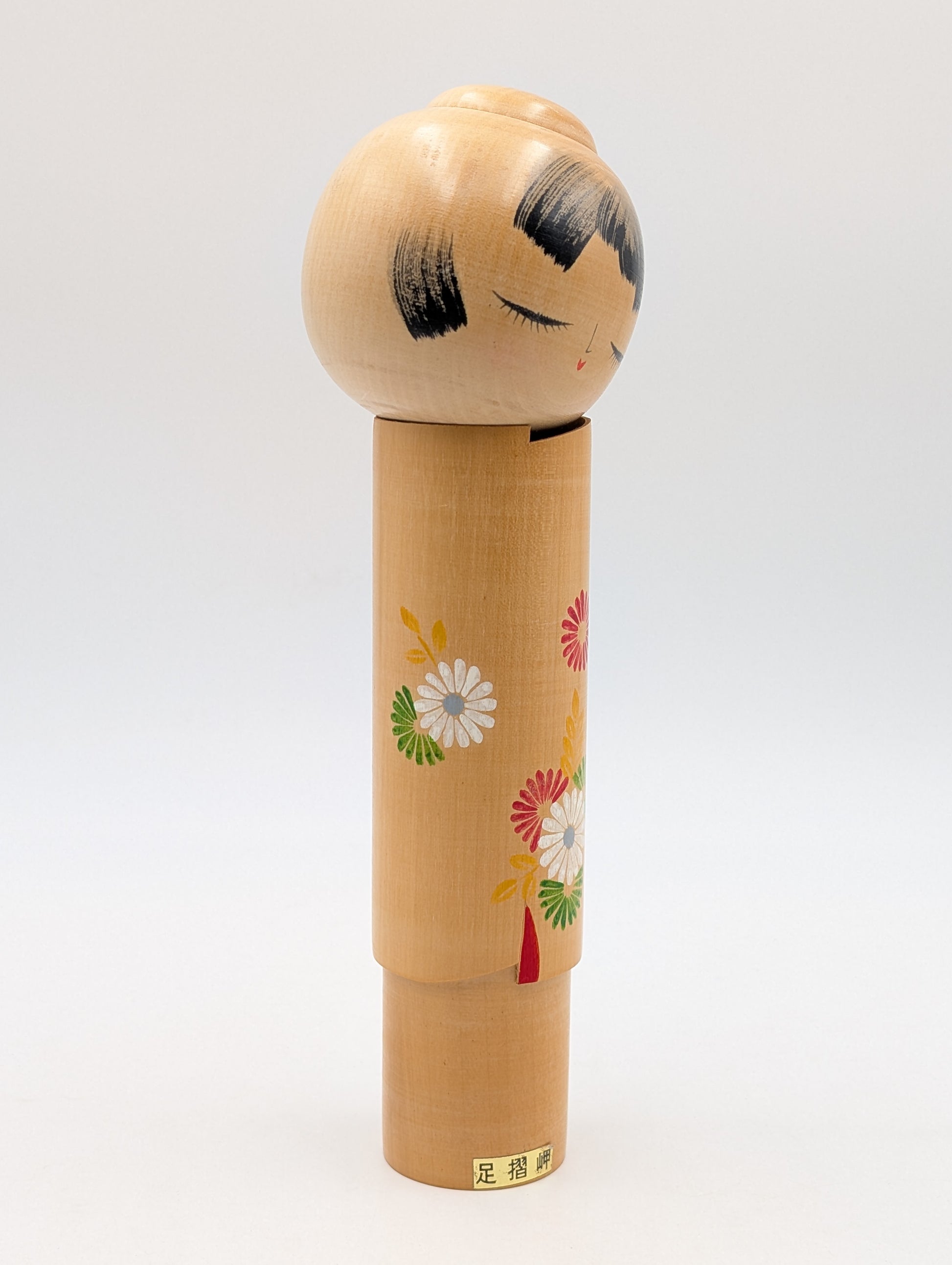 Il nome di questa deliziosa kokeshi è Kogiku che in giapponese significa "piccolo crisantemo", infatti sul suo bellissimo kimono sono stati finemente dipinti dei fiori di crisantemo. Il crisantemo, chiamato anche “margherita dai 16 petali” è uno dei fiori più apprezzati e diffusi in Giappone, in quanto è considerato il fiore simbolo dell’Impero del Sol Levante infatti, proprio il disegno di un crisantemo stilizzato è lo stemma della famiglia imperiale.