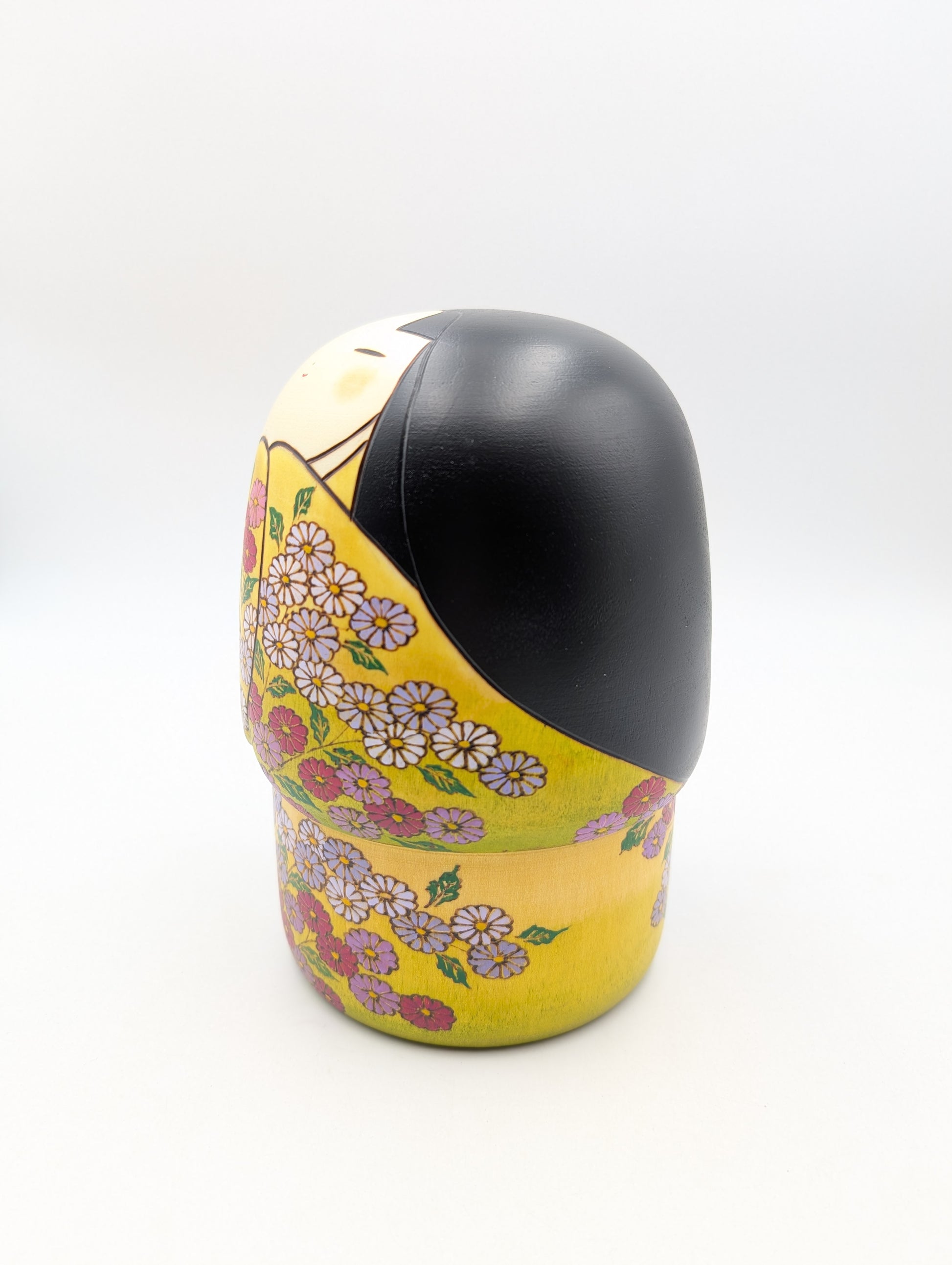 Kokeshi realizzata in un unico esemplare, appositamente per Artigianato Giapponese, dal pluripremiato artista Fumio Tomidokoro. Nato nel 1948 nella prefettura di Gunma, vinse per ben due volte, nel 2007 e nel 2008, l'ambitissimo "Prime Minister Award". Le sue kokeshi sono caratterizzate da un'espressione dolce e serena del volto, da kimono colorati e ricchi di particolari e dall'apparire molto raffinate e principesche. Il nome di questa meravigliosa kokeshi è Seishu che in giapponese significa "autunno sereno". Il crisantemo, chiamato anche “margherita dai 16 petali” è uno dei fiori più apprezzati e diffusi in Giappone, in quanto è considerato il fiore simbolo dell’Impero del Sol Levante infatti, proprio il disegno di un crisantemo stilizzato è lo stemma della famiglia imperiale.