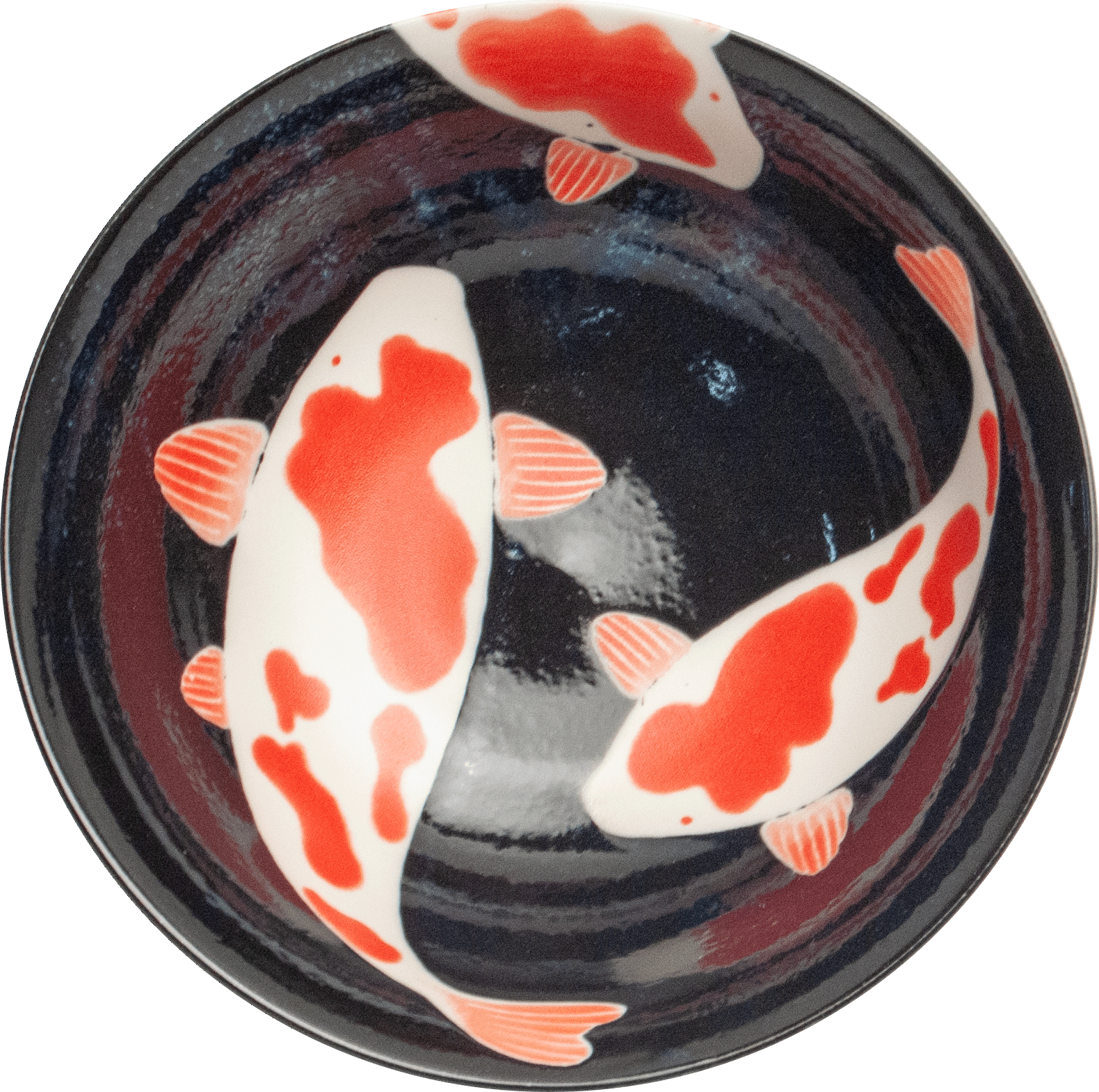 Elegante ciotola in porcellana sulla quale sono raffigurate delle carpe (koi) giapponesi.