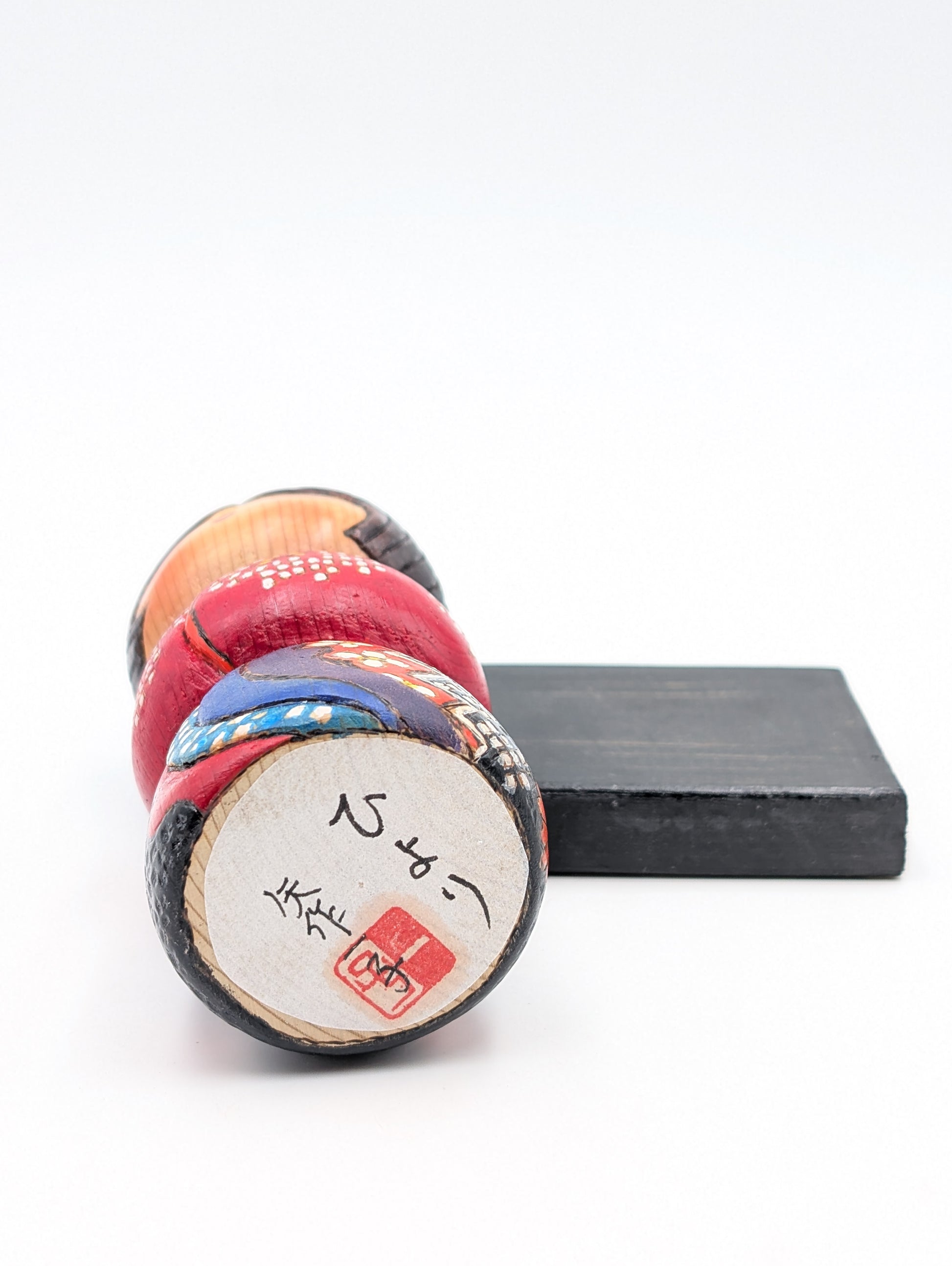 La kokeshi è corredata da una basa in legno ed è compresa la confezione originale, timbrata e firmata dall'artista.