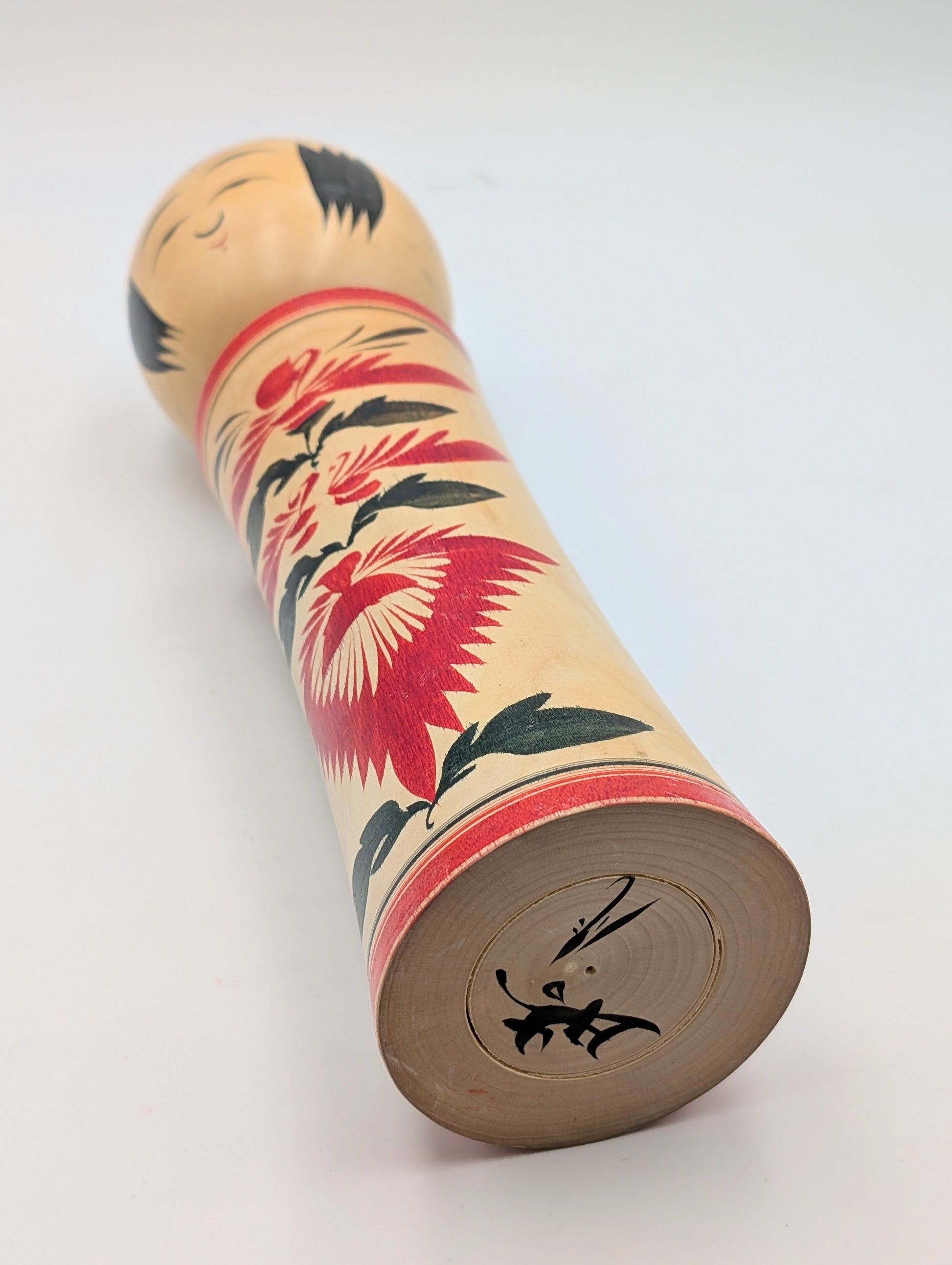 Nonostante sia un pezzo vintage le sue condizioni generali sono buone, presenta solo delle leggere imperfezioni dovute al tempo. Sotto la kokeshi è presente la firma dell'artista che l'ha realizzata.